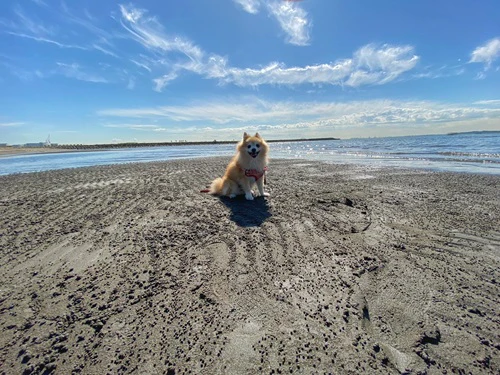 「沖ノ島は以前、ポコちゃんとカーナビを見ながらふたりで見つけたスポットなんです。駐車場が広く、穴場なのか人も少ないうえ、犬も人間も一緒になって冒険のように楽しめる場所でした。