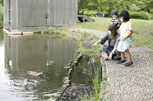 休日は遊具や大きな池などがある公園へ。