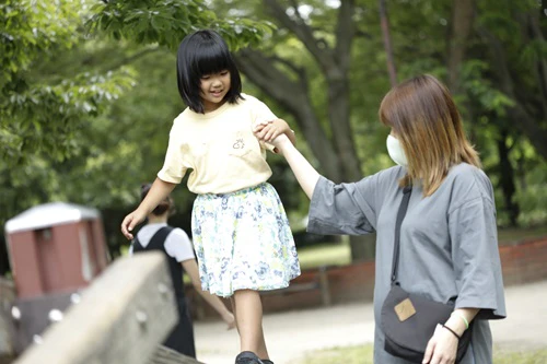 大好きな公園に到着すると、Rちゃんが車のドアを勢いよく開けます。身体を動かして遊ぶことが大好きで、「ちょっとおてんば」とOさんが言うように、公園に到着するやいなや「ママ~、こっちだよ」「ママ、見て!」と動き回るRちゃん。その姿が何とも愛らしく映ります。