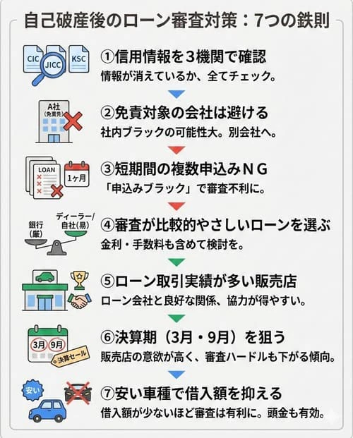 - 自己破産後のローン審査に通りやすくする7つのポイント